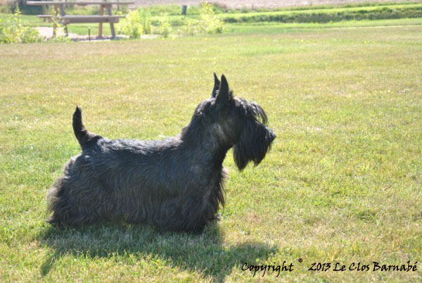 Edgar, notre bel Edgar, comme pour ta maman, la mort t’a arraché à nous beaucoup trop tôt… Tu es parti le jour de l’Ascension, mais aussi et surtout le jour de l’exposition d’Evreux qui était TON exposition de prédilection, où le fier normand tu as brillé à chacune de tes participations. Tu as laissé un grand vide derrière toi petit Kiki, ton absence nous pèse chaque jour, ta bille de clown et ton air coquin nous manquent tellement… Nous savons que là où tu es tu ne souffres plus et tu as retrouvé ta maman Bertille, ton oncle Barnabé et ta vieille mamie Myrtille. Amusez-vous bien là-haut les scotties et veillez sur nous… |